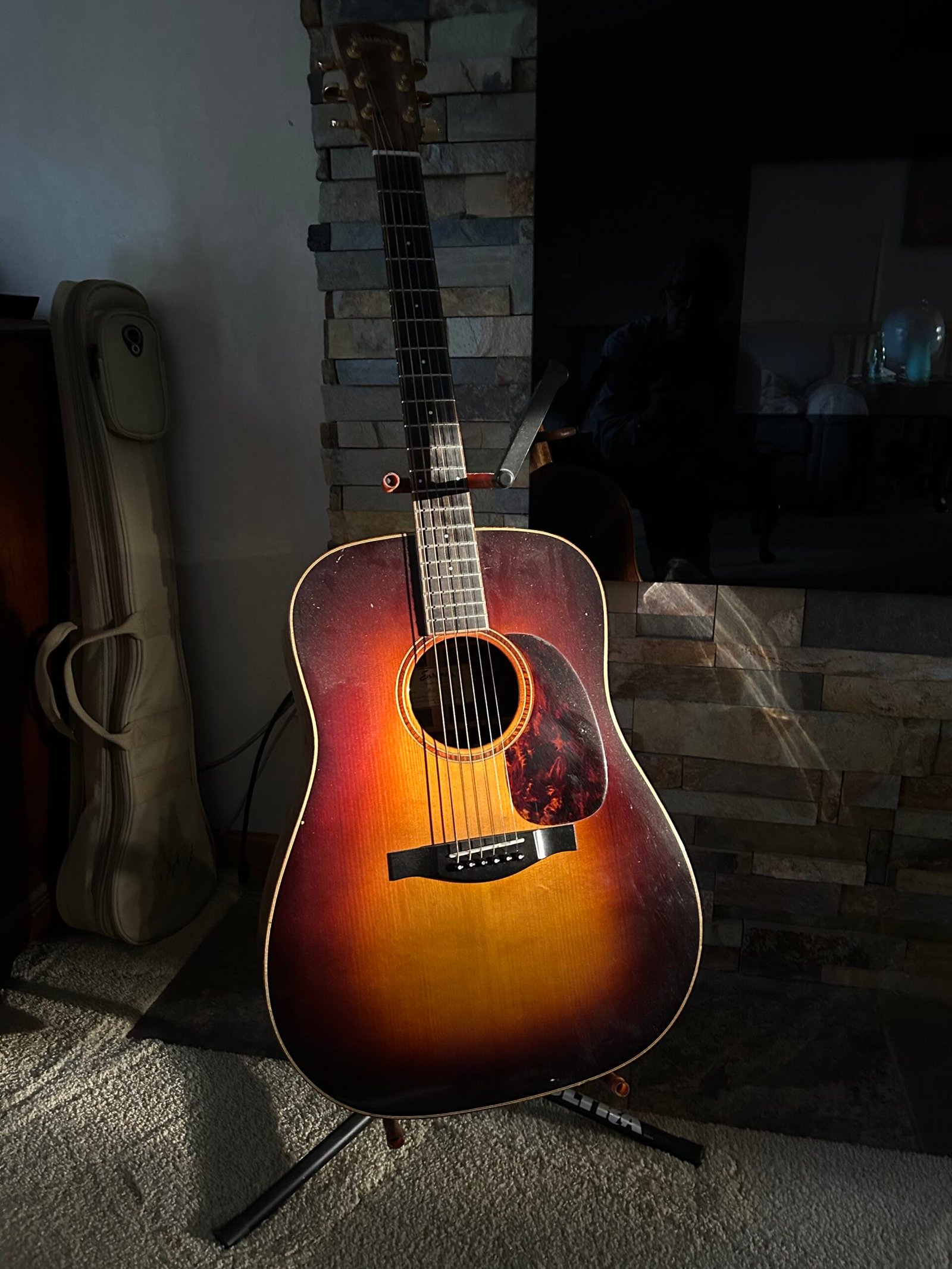 A one-man band playing chill 70’s rock with guitar, drums, and harmonica, wrapped in a sunburst vibe.